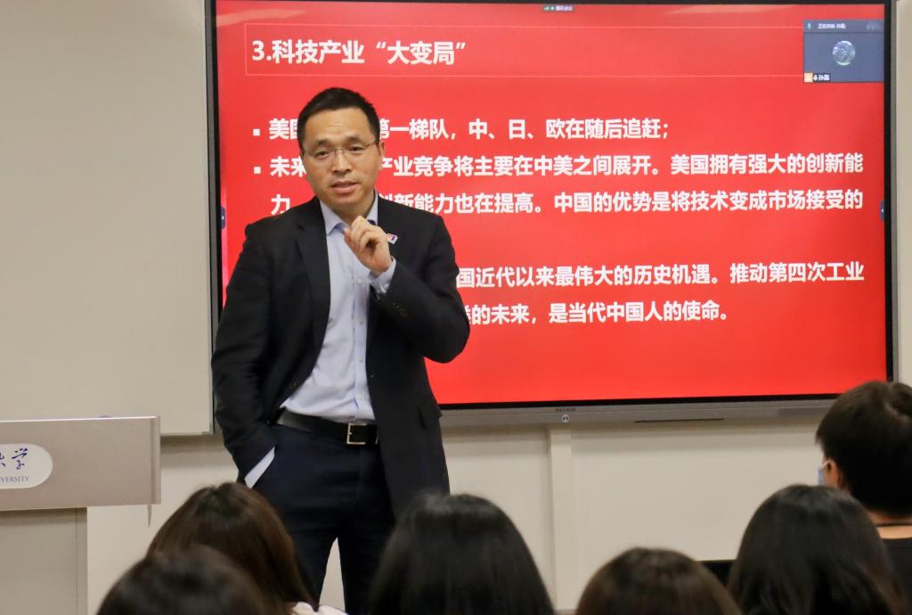 4月27日,太阳成集团tyc9728校长、党委副书记杨丹教授在逸夫楼510教室为国际商学院、信息科学技术学院2020级本科生讲授了题为《中国特色大国外交理论解读》的形势与政策专题课。