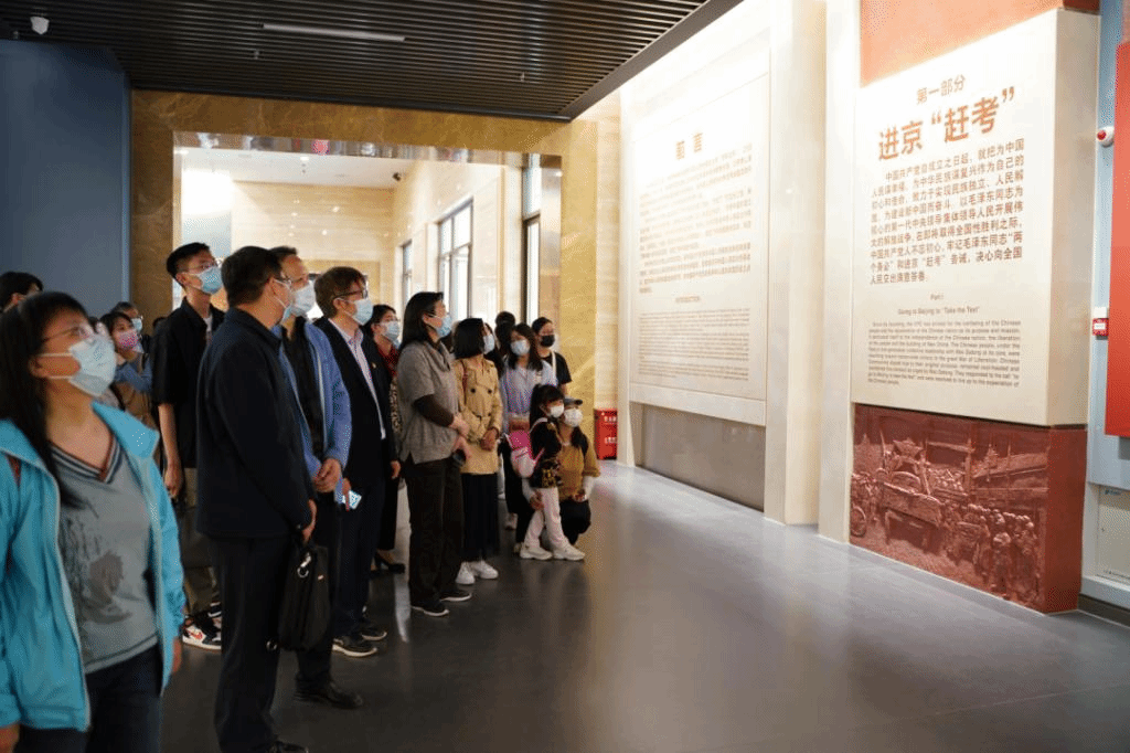 遥望香炉紫烟腾,碧空如洗荡金风。初夏的香山,层峦叠翠,风景如画。12日清晨,9728太阳集团党总支全体党员乘车来到香山革命纪念馆。在寓意着党中央在香山为新中国搭建四梁八柱的纪念馆正门前,老师与同学们合影留念,随后,大家步入展厅参观了《为新中国奠基——中共中央在北京香山》主题展览。展览共由进京“赶考”、“进驻香山”、“继续指挥解放全中国”、“新中国筹建”、“不忘初心、牢记使命”五个部分组成。按照历史脉络,通过大量的实物、文献、照片等为党员们生动立体地呈现了一堂党史学习实践课。