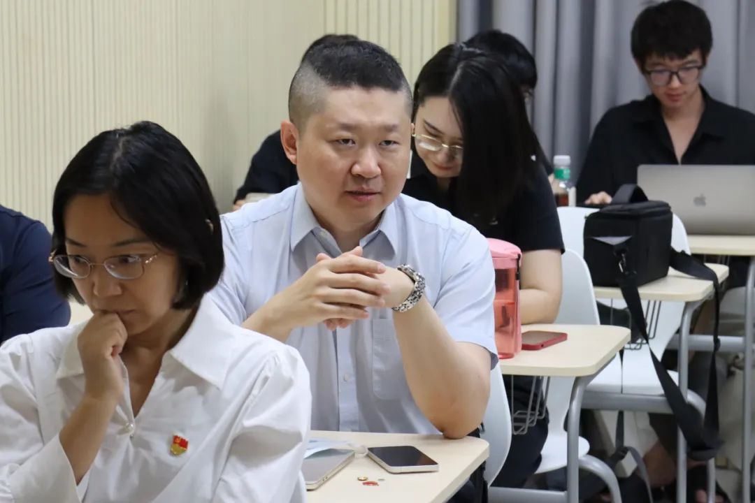 讲座过程中,亚伟、梁爽、周英等学院教师,与张帆教授围绕AI成本控制、技术壁垒等现实问题,以及AI对传统教育和知识迭代的影响、AI的自我意识和情感等前沿话题展开积极交流和深入探讨,现场学术氛围热烈。