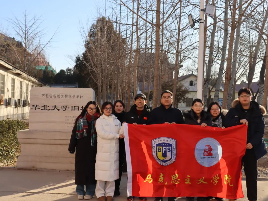 2025年1月14日至16日,北外马院党总支组织部分师生赴河北平山县、正定县、保定市等地区开展红色研学实践活动。本次活动主要围绕四个主题——探寻辗转华北办学的北外校史、弘扬西柏坡精神、沿着总书记的足迹考察正定、感悟留法勤工俭学运动这一段光辉岁月的伟大意义。通过本次研学,研学团形成具有创新性和实践性的研究成果,融入思政课教学,提高教学质量。