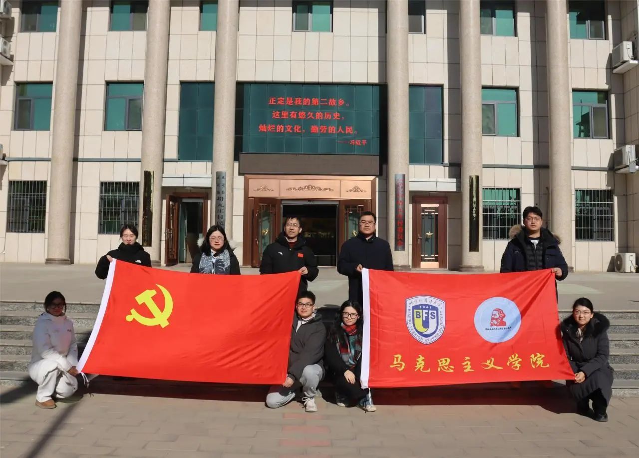 1月15日,北外马院党总支党建及红色研学团一行赴西柏坡开展党建学习以及实践教学活动。在西柏坡,师生们开展了重温入党誓词活动,追忆入党初心,并参观西柏坡纪念馆以及中共中央委员会、中国人民解放军总部旧址。本次活动,促进师生学习了解西柏坡的红色文化,传承西柏坡精神,从革命历史中汲取积极向上的奋进力量。平山县团县委书记刘凡凡以及西柏坡纪念馆的相关负责人陪同参观。