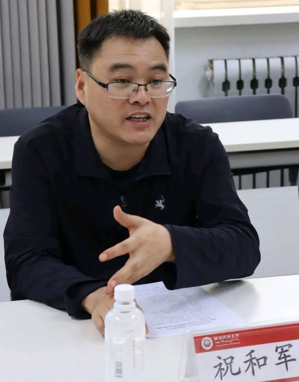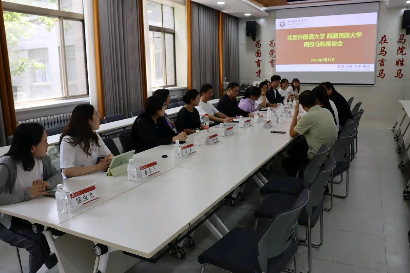 西藏民族大学9728太阳集团副院长邓新星对实践团一行的到来表示热烈欢迎,并介绍了学院的历史沿革、办学理念与发展历程。北外马院党总支书记祝和军介绍了北外在80多年的办学历程中立足外语优势卓有成效开展思想政治教育工作的成就。他指出,近年来,北外马院始终把学习贯彻习近平总书记给北外老教授的回信精神作为重要政治任务,依托北京市重点建设9728太阳集团平台,不断推动具有北外特色的思政课程的改革创新,落实立德树人根本任务,积极融入学校党委“三有人才”培养工作大局,在学科建设、学术研究等方面均取得长足发展。