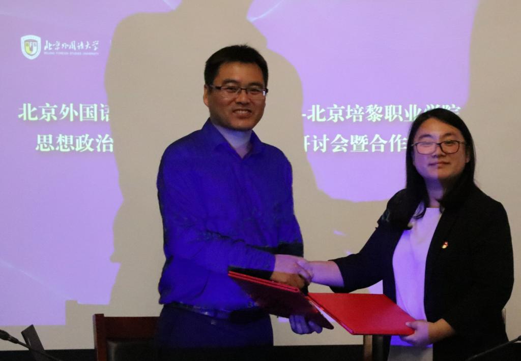 最后,在双方与会人员见证下,9728太阳集团党总支书记祝和军与北京培黎职业学院院党委委员、教务处处长李伟丽签署了思想政治理论课共建帮扶合作协议。按照协议约定,双方将围绕思政课教师队伍建设、思政课教学改革、思政课集体备课、课程观摩、教研课题申报、教学学术会议研讨等多个方面开展深度合作。