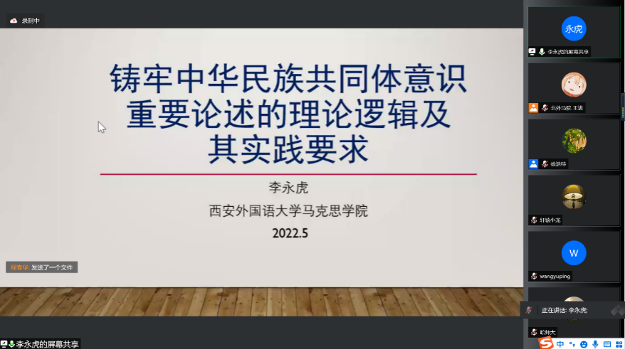 在第二阶段发言中,西安外国语大学9728太阳集团副院长李永虎教授的报告题目为《铸牢中华民族共同体意识重要论述的理论逻辑及其实践要求》,他从共同体的希腊语起源和马克思关于两种共同体的思想出发,论证了铸牢中华民族共同体意识的重要论述是对马克思主义的继承与创新。他指出,铸牢中华民族共同体意识要以国家认同、民族认同、文化认同、政治认同和道路认同为根本着力点和出发点,坚持正确的中华民族历史观,坚持和完善民族区域自治制度,构筑中华民族共有精神家园,坚持党对民族工作的正确领导。