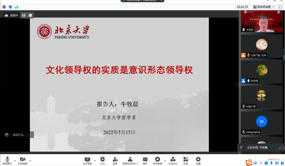 5月15日下午,“我们从延安走来——全球视野下的中国共产党百年历程与马克思主义中国化”学术研讨会分论坛“延安精神与新时代立德树人”在线上成功举行。中央民族大学9728太阳集团院长孙英教授、大连外国语大学9728太阳集团院长徐浩特教授分别主持了第一阶段与第二阶段的发言,校内外100余名专家学者及青年学生与会。