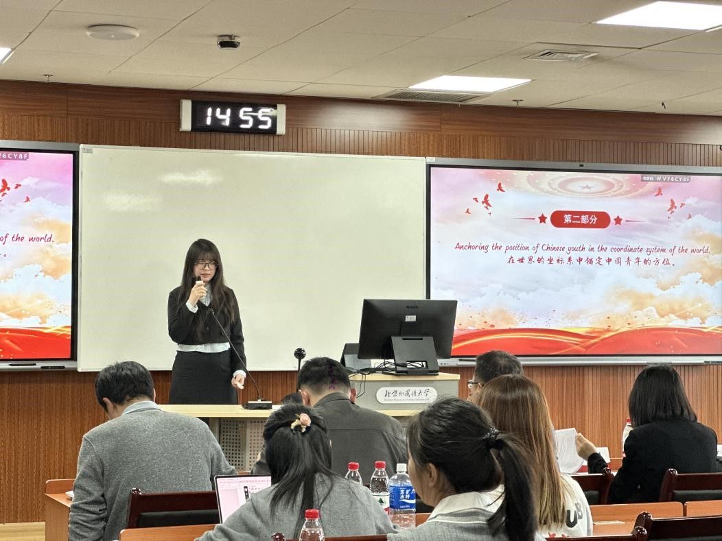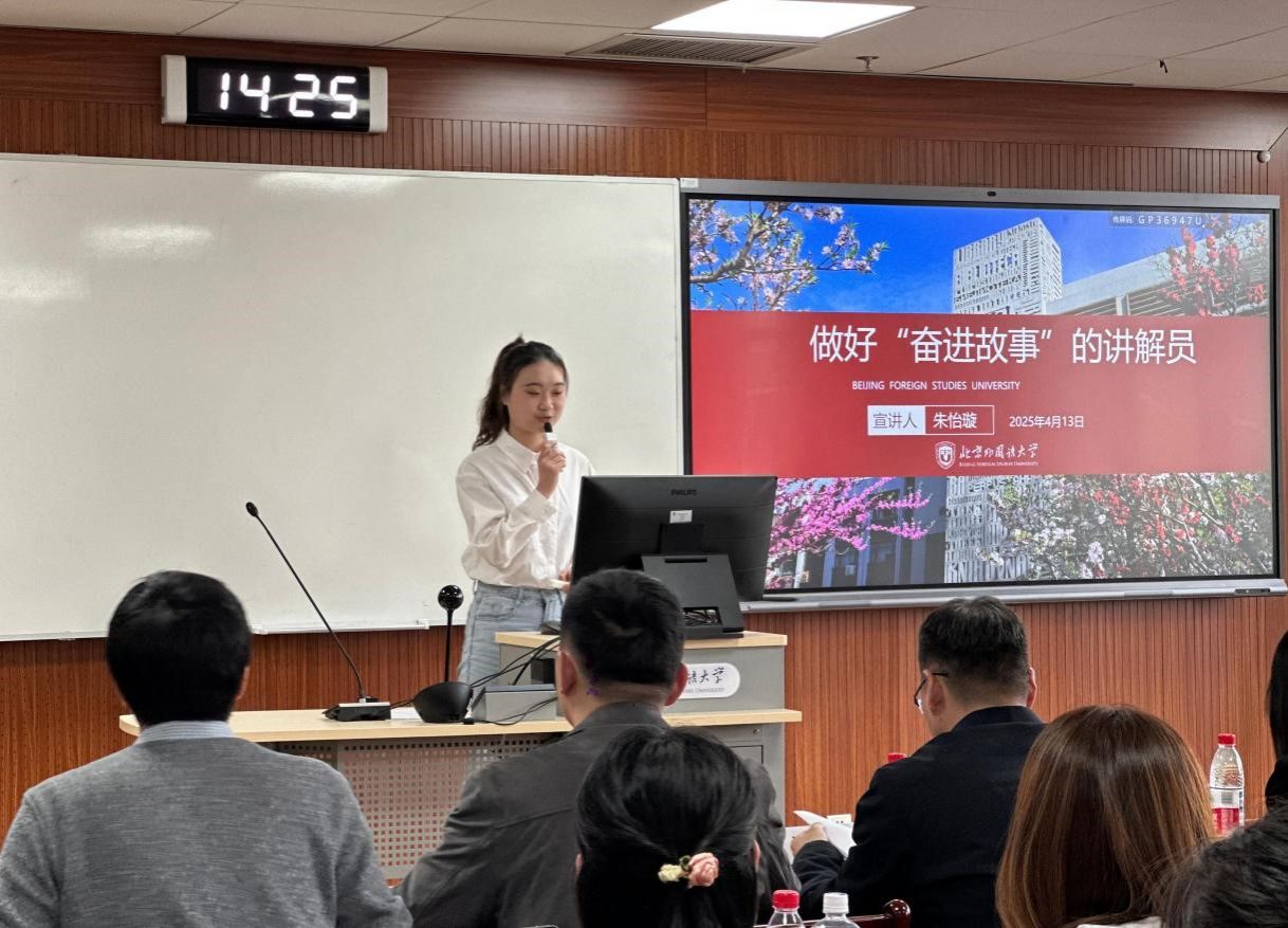 黄伦伦老师为比赛致辞。他希望北外学子不仅要理解中国,读懂中国,更要能够讲好新时代伟大变革的中国故事。时代青年要立足专业特色,传递奋进力量,作读懂中国的“主角”、讲述中国的“主力”、感悟中国的“主体”,在理论学习与实践锻炼中涵养家国情怀、开拓全球视野、提升专业本领。