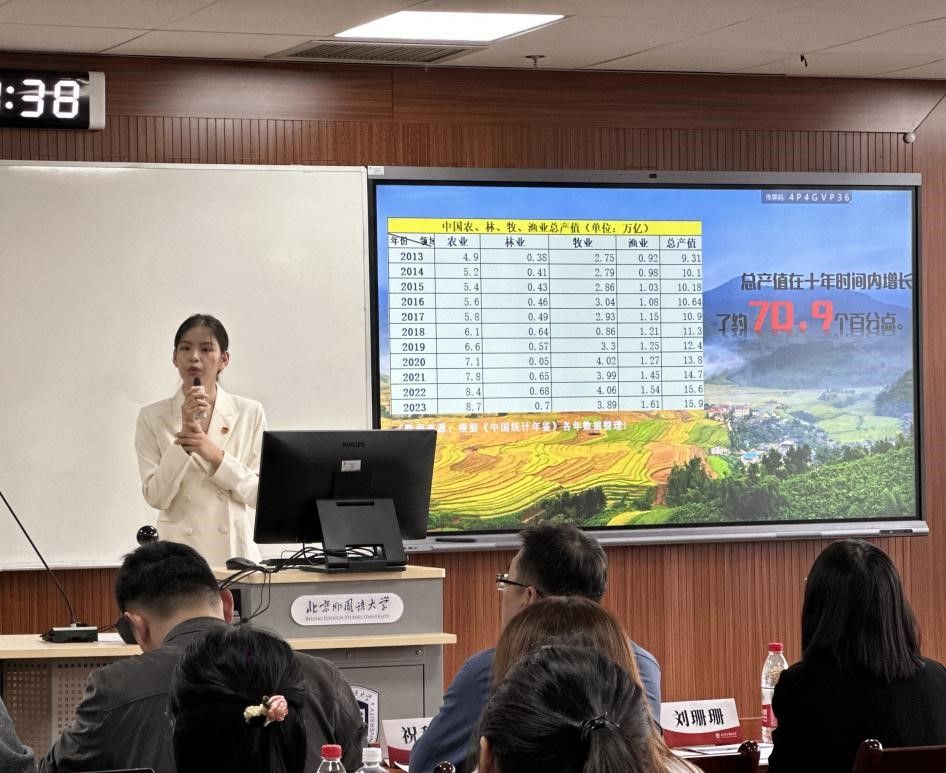 史明慧、俞子欣同学在《青春助农,“村”意盎然》宣讲中,讲述了自己积极投身乡村振兴事业,用青春力量助力乡村发展的故事。她们深入乡村调研,让乡村焕发出新的生机,展现了新时代青年在乡村振兴中的责任与担当。
