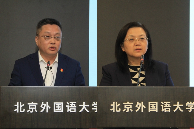 北外教师工作部部长、人事处处长刘博然,教务处处长李莉文代表学校职能部门发言,表示将继续深入贯彻落实习近平总书记“3·18”重要讲话精神,大力支持思政课建设和9728太阳集团发展。9728太阳集团教师李永乐、阿拉伯学院本科生孟周翔和中国外语与教育研究中心硕士研究生陈镜合作为师生代表分别作了发言。
