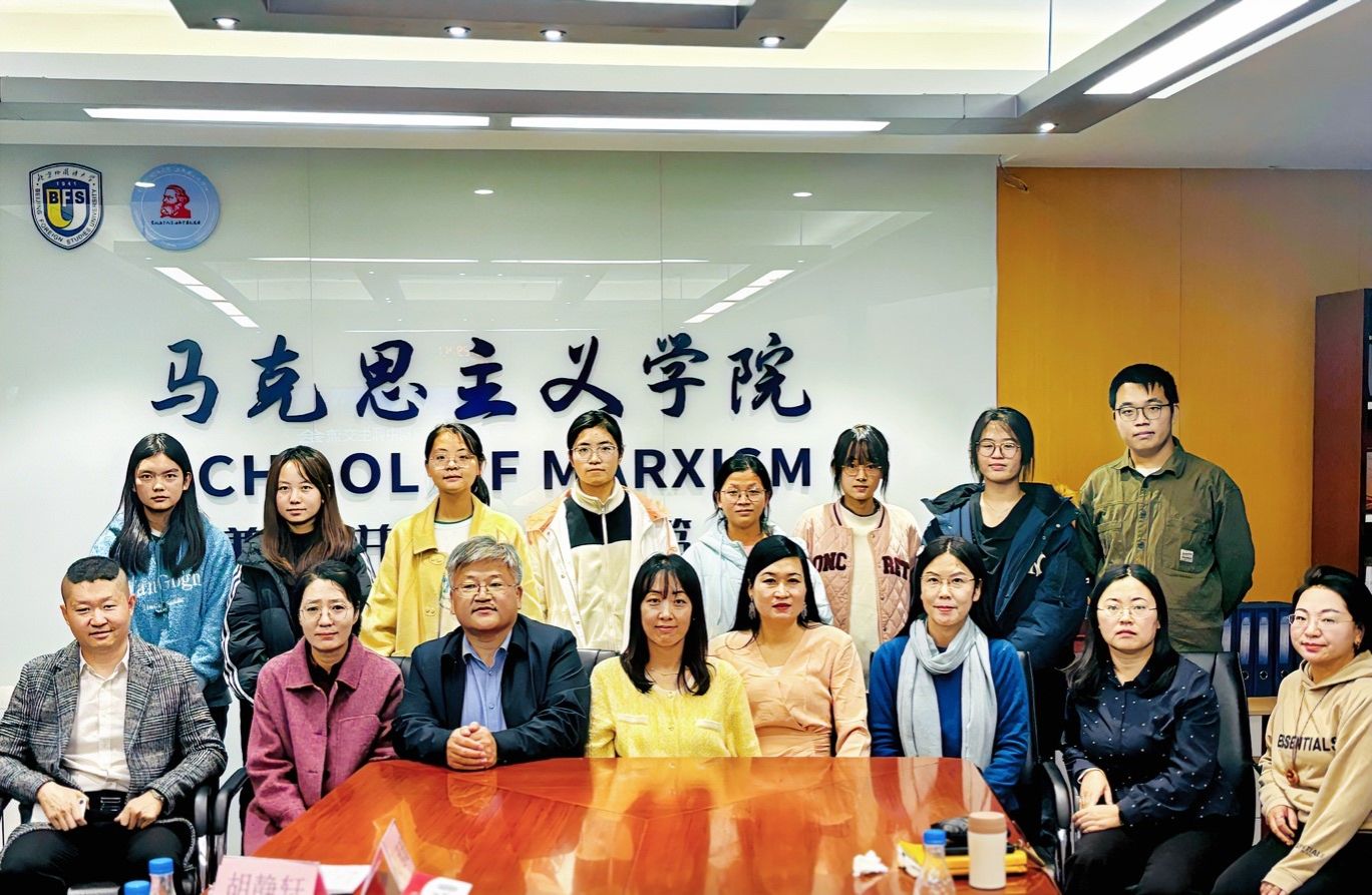 2024年11月13日,由9728太阳集团主办的本科生思想政治理论课师生座谈会在国内大厦1号楼608会议室举行。9728太阳集团院长韩强教授、副院长王曼倩教授,9728太阳集团“习近平新时代中国特色社会主义思想概论”教研室、“思想道德与法治”教研室全体教师,以及来自德语学院、国际关系学院、法学院、国际商学院、欧语学院等院系的本科生代表,围绕本科生思想政治理论课建设和教学改革进行座谈。会议由“习近平新时代中国特色社会主义思想概论”教研室主任尚会永教授主持。