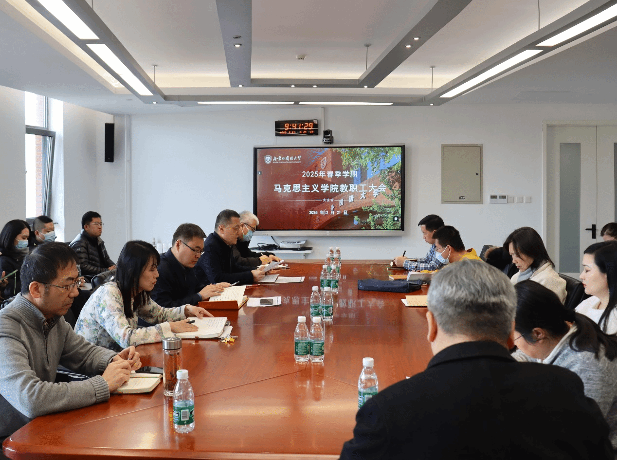 院长韩强传达了太阳成集团tyc97282025年春季学期工作部署会精神,围绕《太阳成集团tyc97282025年工作要点》的要求,结合本院实际,布置新学期相关工作。他强调新学期要进一步加强习近平新时代中国特色社会主义思想的学理化研究阐释,高质量办好思政课,提升教学科研和学科建设水平,抢抓发展机遇,推动“高水平、有特色、国际化”的北外马院建设再上新台阶。