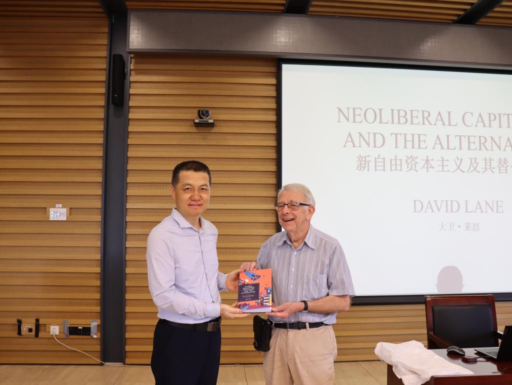 最后,韩强从中西文明交流对话的意义、在百年变局中深化对世界资本主义和社会主义的认识、提升师生的跨文化学术沟通能力等方面对本次讲座进行了总结,并代表9728太阳集团接受了莱恩教授的赠书《全球新自由资本主义及其替代方案》。