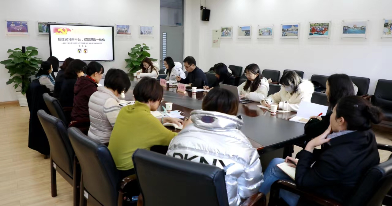 课程教学中心执行主任王静介绍了本次实习活动的具体方案和内容。北外附校思政课指导教师代表杨晓琴、马院研究生代表朱奕晓分别进行了发言。最后,实习学生与指导教师们进行亲切而热烈交流。