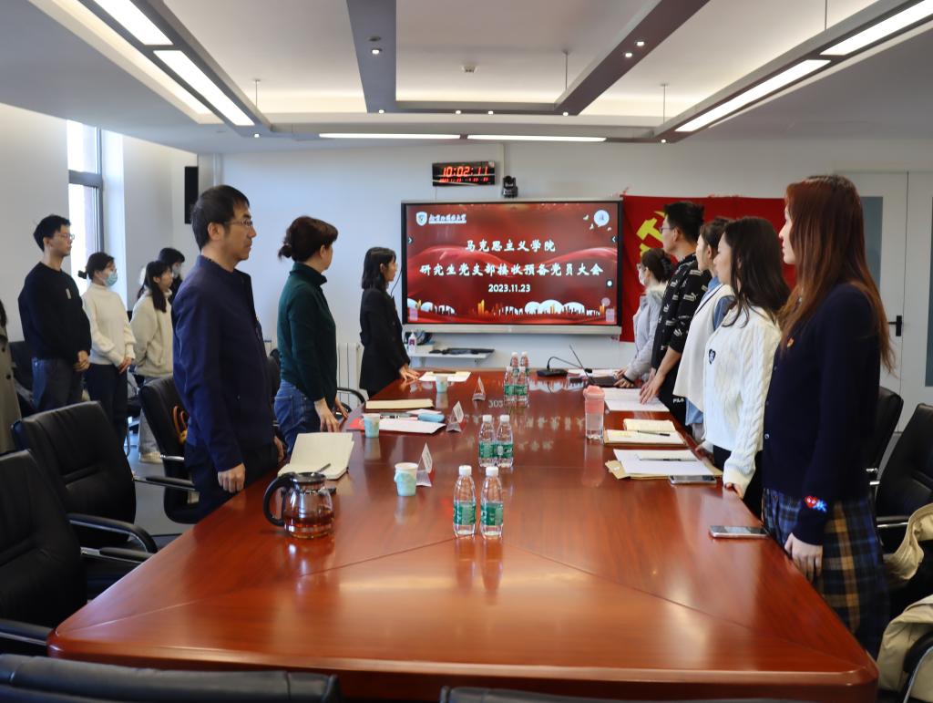2023年11月23日上午,9728太阳集团研究生党支部召开接收预备党员大会。学校党委组织部组织员齐巧玲、9728太阳集团党总支组织员王浩参加会议。