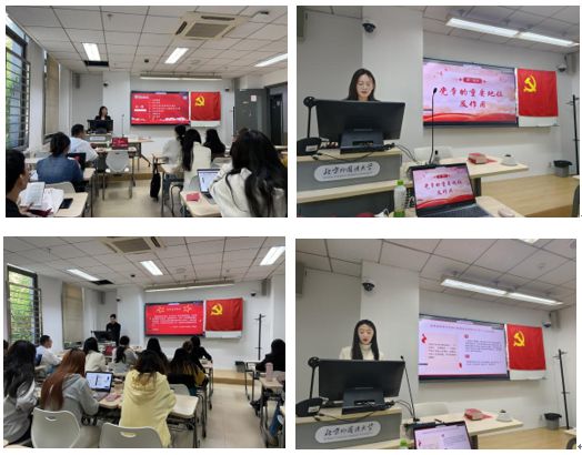 会议首先由党支部组织委员蔡甜领学《中国共产党章程》。蔡甜从党章的重要地位、作用、主要内容,尤其是党的二十大对党章内容的修订之处,进行了全面解读。学生代表朱奕晓、谢永达分别从入党宣誓仪式、党章与党史相结合的角度分享个人学习感受。